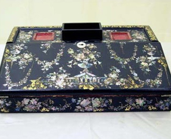 Embroidery of the Saltonstall Seat by Anna Saltonstall Silk, 1807. This embroidery depicts the original “Buttonwoods” as it was in 1807.Interior of the Daniel Hunkins Shoe ShopLap Desk Wood, mother-of-pearl inlay, and red velvet lining. This lap desk was given to Charlotte Chandler Tenney by her students at Bradford Academy in 1835 in appreciation of her service.Fire Engine Metal, painted. From the Haverhill Historical Society toy collection.Black leather, steel beads. 1884. Donated by Helen Sargent Miller. Photo by Bennett W. Olmsted.Dressing Table, Hand Painted by Elizabeth Morse Harding Circa 1810.Detail of Dressing Table Hand Painted by Elizabeth Morse Harding circa 1810.Beaded Front Lace Shoe Grey suede, steel and glass beads, circa 1915. This shoe was made by Laird, Schober & Co. of Philadelphia. Photo by Bennett W. Olmsted.Patchwork Crazy Quilt Silk, velvet, assorted fabrics and embroidery. Donated by Emma S. Cote.Beaded Purses Cotton, satin, steal beads. These two purses are from a large collection of beaded purses owned by the Haverhill Historical Society.Hand Painted Fans Feather, wood & mother of pearl, silk.Embroidered Woman’s Pocket Linen, late 1700s. From the Duncan Family.Haverhill Made or Worn Shoes Haverhill made or worn shoes from the Society’s collection, circa 1760-1960.Native American Basket and Stone Tools Split ash wood & various stone.